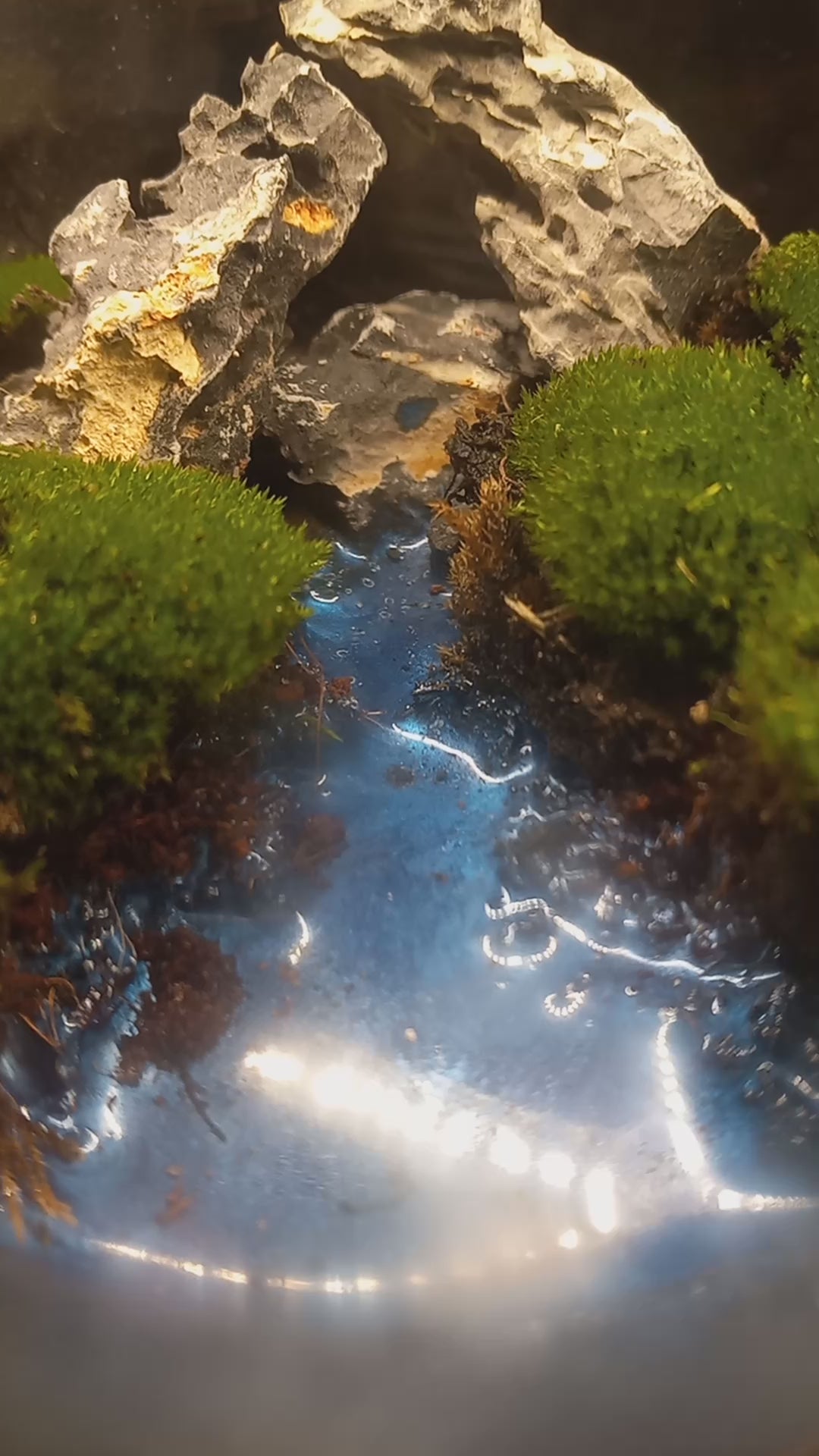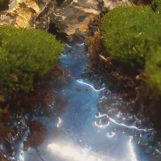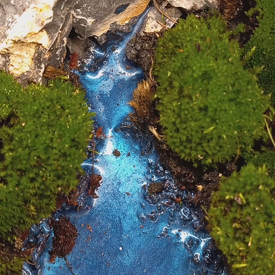 A resin river flowing between lush pillow moss.